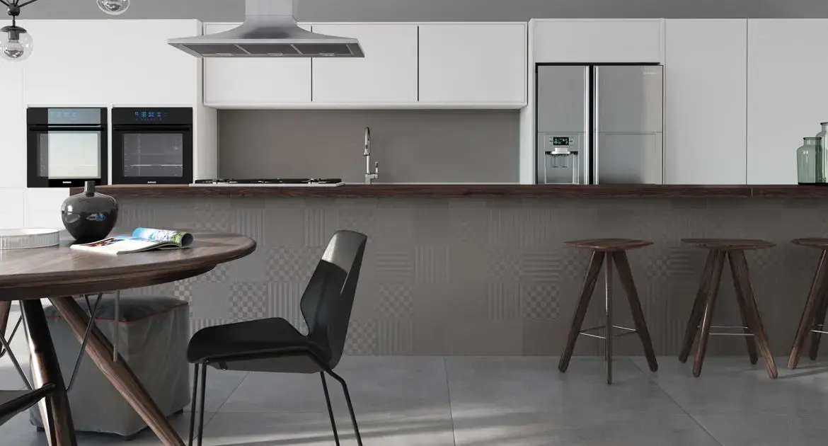 Revestimentos 3D acetinados, que trazem movimento e sofisticação.
